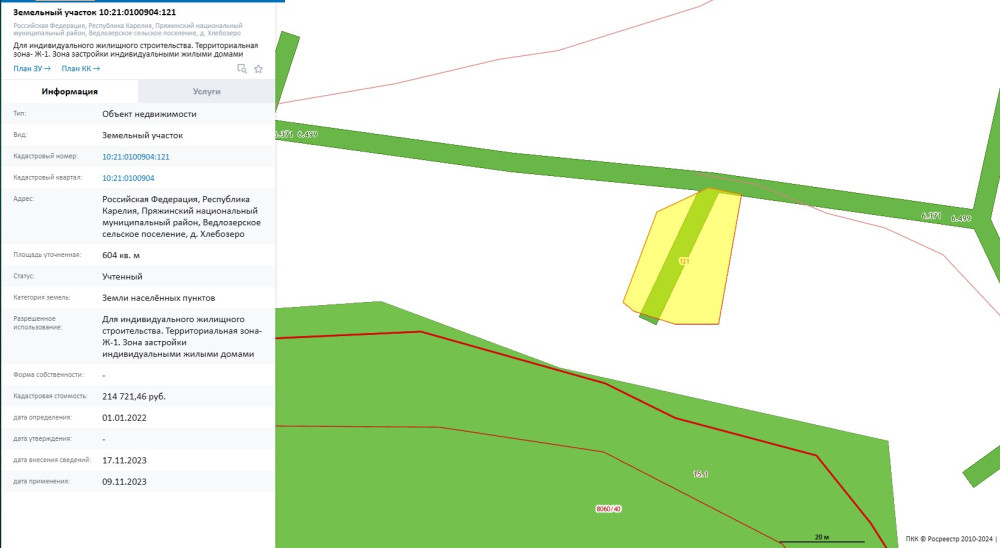Лот №5.Право заключения договора аренды земельного участка из земель населенных пунктов, имеющего кадастровый номер 10:21:0100904:121, площадью 604 кв. м, местоположение: Российская Федерация, Республика Карелия, Пряжинский национальный муниципальный район, Ведлозерское сельское поселение, д. Хлебозеро, вид разрешенного использования – «Для индивидуального жилищного строительства. Территориальная зона- Ж-1. Зона застройки индивидуальными жилыми домами».