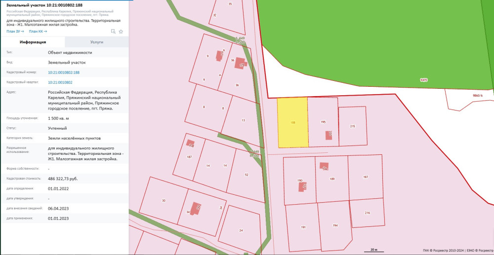 Лот №1.Право заключения договора аренды земельного участка из земель населенных пунктов, имеющего кадастровый номер 10:21:0010802:188, площадью 1500 кв. м, местоположение: Российская Федерация, Республика Карелия, Пряжинский национальный муниципальный район, Пряжинское городское поселение, пгт. Пряжа, вид разрешенного использования – «для индивидуального жилищного строительства. Территориальная зона - Ж1. Малоэтажная жилая застройка».