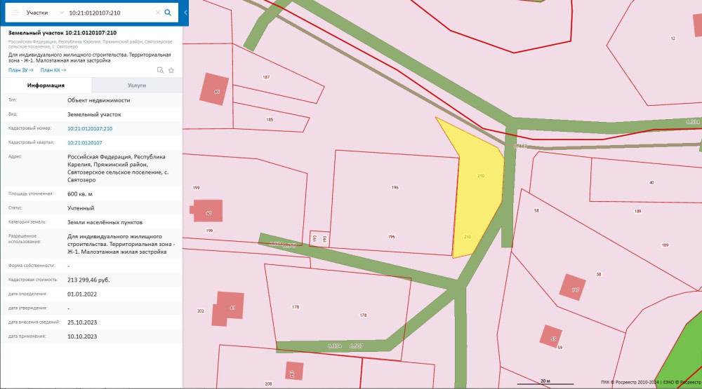 Лот №6.Право заключения договора аренды земельного участка из земель населенных пунктов, имеющего кадастровый номер 10:21:0120107:210, площадью 600 кв. м, местоположение: Российская Федерация, Республика Карелия, Пряжинский район, Святозерское сельское поселение, с. Святозеро, вид разрешенного использования – «Для индивидуального жилищного строительства. Территориальная зона - Ж-1. Малоэтажная жилая застройка».