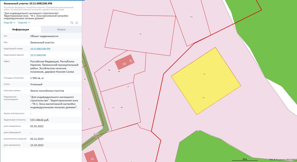Лот №3.Право заключения договора аренды земельного участка из земель населенных пунктов, имеющего кадастровый номер 10:21:0082206:456, площадью 1500 кв. м, местоположение: Российская Федерация, Республика Карелия, Пряжинский муниципальный район, Эссойльское сельское поселение, деревня Нижняя Салма, вид разрешенного использования – «Для индивидуального жилищного строительства». Территориальная зона – «Ж-1. Зона малоэтажной застройки индивидуальными жилыми домами».